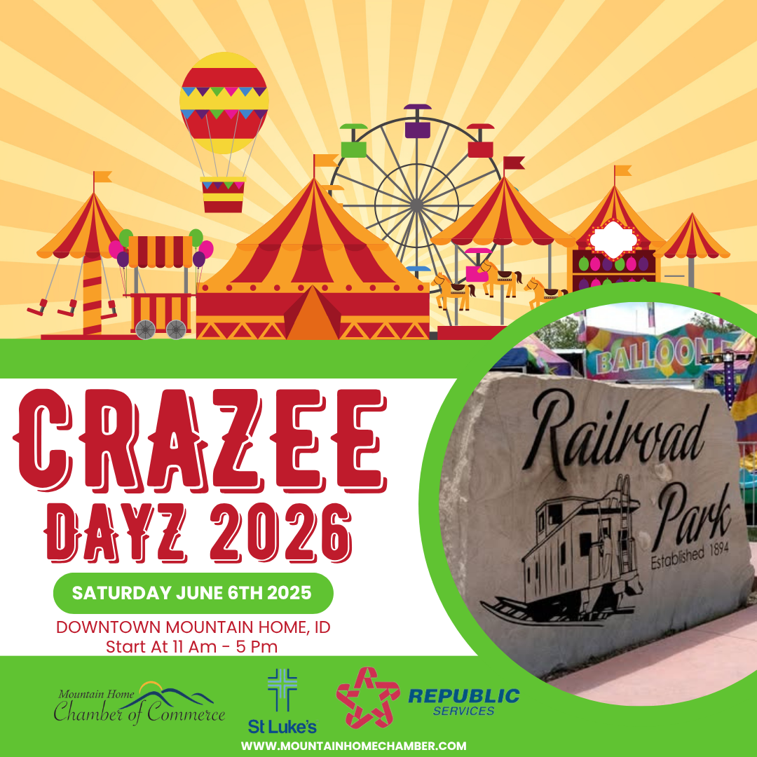 Crazee Dayz is one of our biggest and most anticipated annual events, bringing together the community for a fun-filled celebration each year. Visitors can explore a wide variety of local vendors from Mountain Home and the surrounding areas, offering everything from unique crafts and handmade goods to delicious treats and specialty items. The event also features an exciting carnival that travels all the way from Washington, providing entertainment for all ages with rides, games, and attractions.